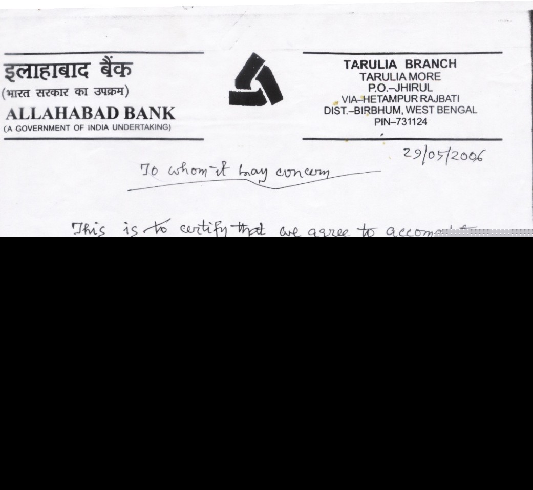 2. Secondly it will get support by the ALLAHABAD BANK, TARULIA BRANCH